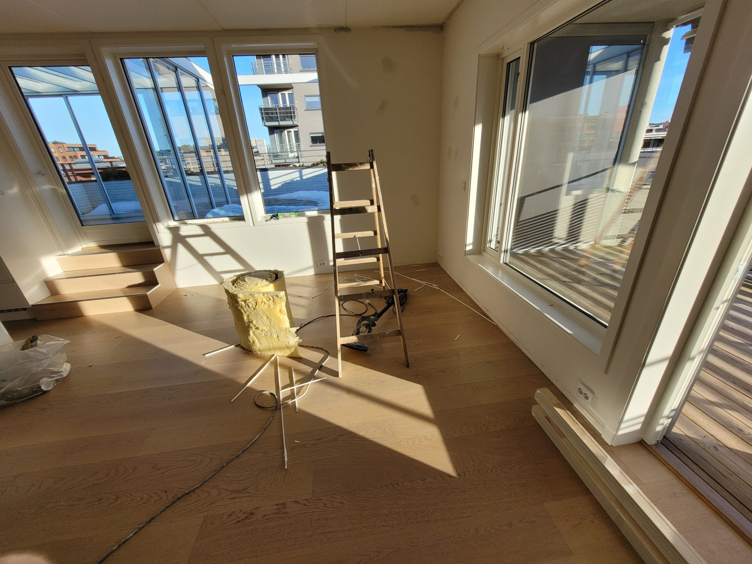 Dette inkluderer montering av dører, vinduer, listverk, karmer og innramminger. Snekkeren sørger for nøyaktige tilpasninger og et pent, ferdig resultat i alle rom.